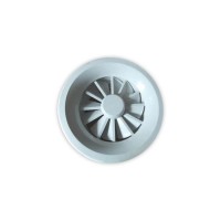 圆形散流器用于冷暖送风、常安装在顶棚上吹出气流呈贴附(平送、下送)型,其结构为多层锥面型。由于室内诱导气流大于排风量,因此吹出气流减速较快。因相对任意大小面积来说可以供给较大风量,而且在给定的风量范围内扩散半径可大小变化,常与圆形对开调节阀配套使用。